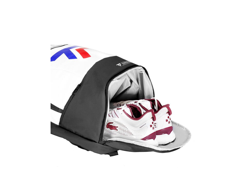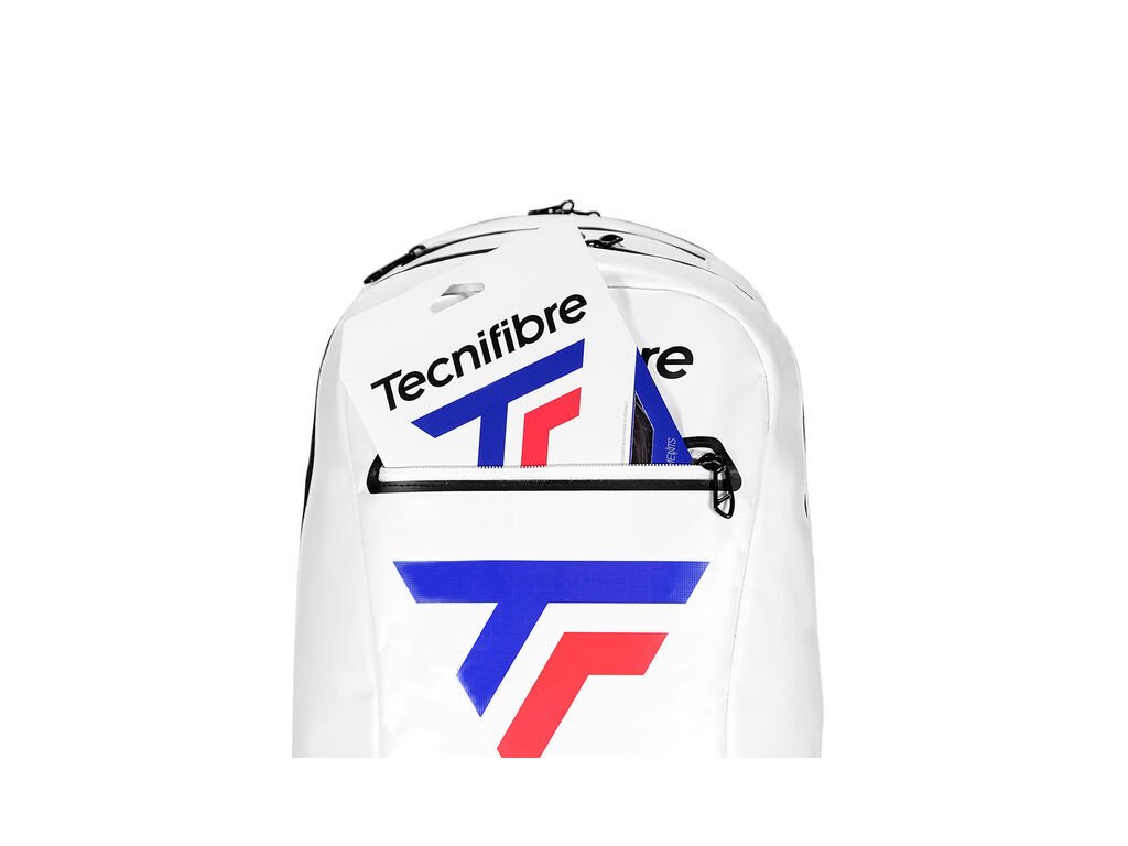 Z designového hlediska je tento batoh symbolem elegance a sportovního výkonu, ideálně ladí s dámskými raketami řady TEMPO. Elegantní bílý základ s jemnými detaily v nebesky modré barvě a logo TF dotváří ženský vzhled a perfektní soulad s raketami TEMPO.
