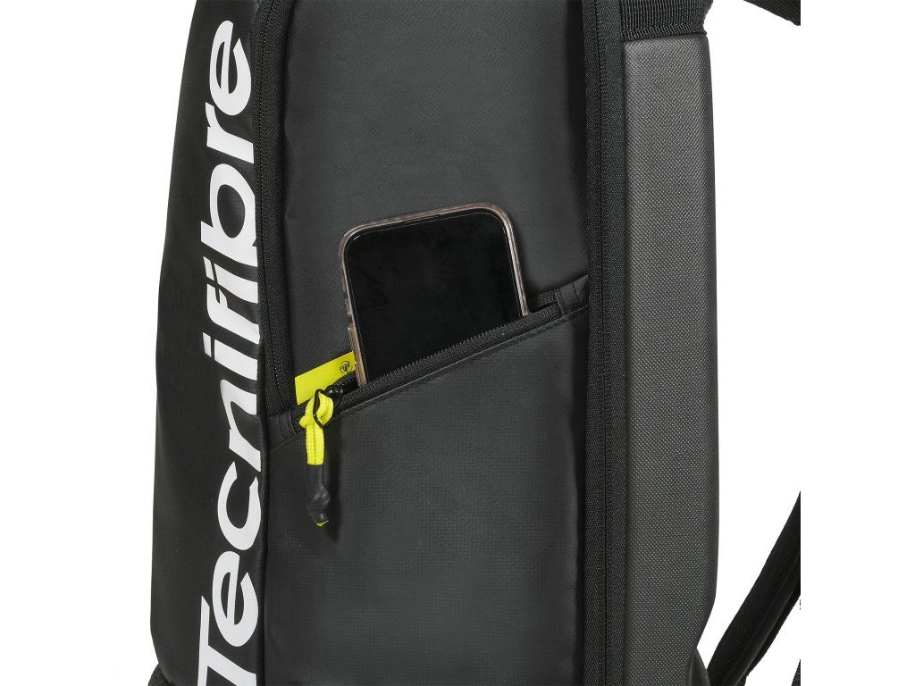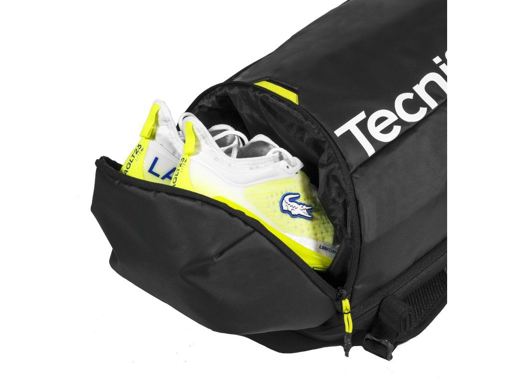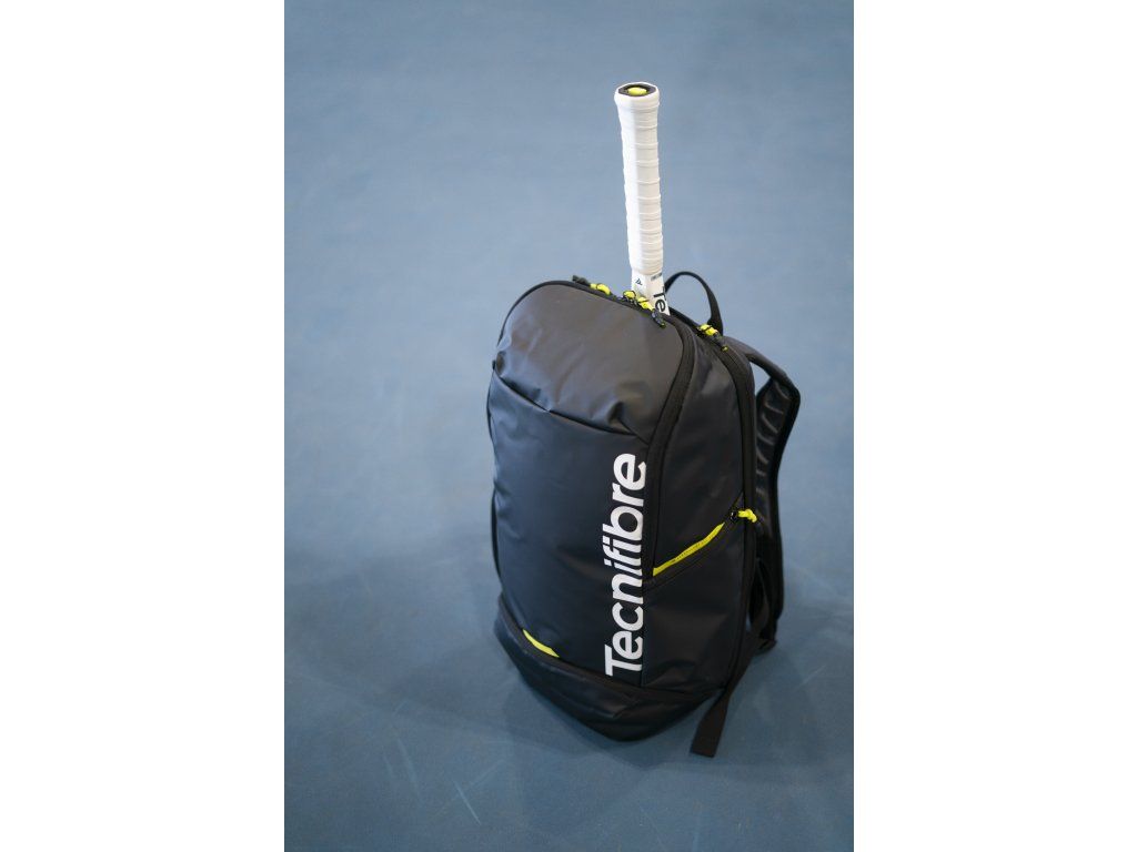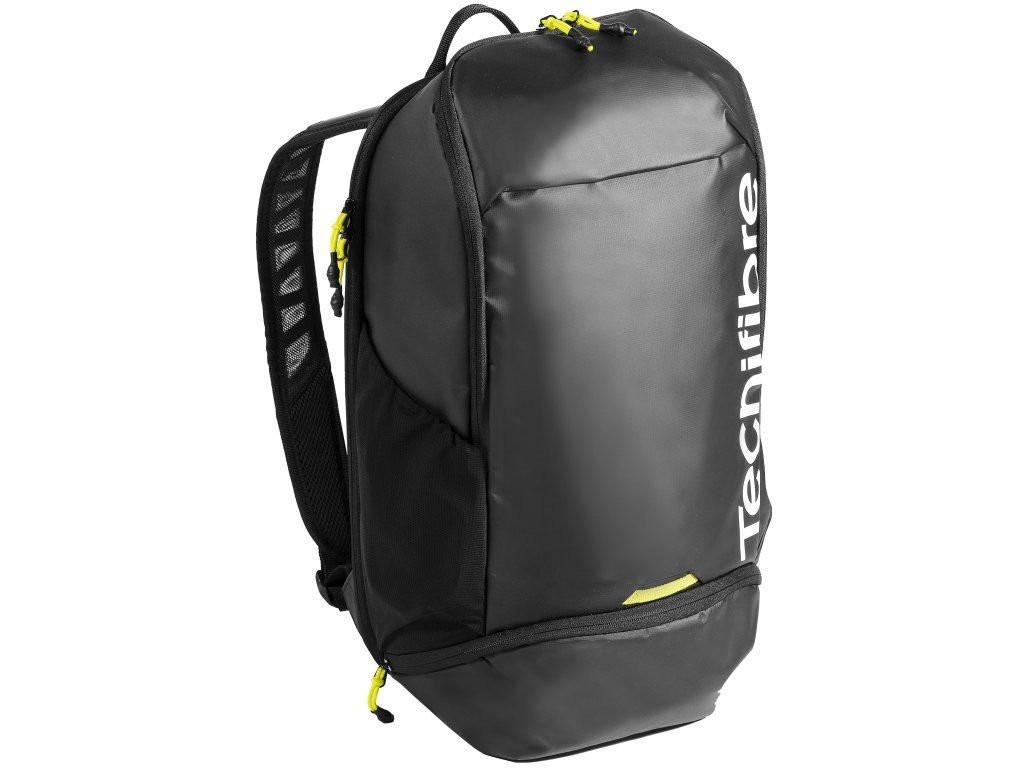 Batoh je vysoce odolný a praktický, připravený pojmout maximum vybavení v naprostém bezpečí. Zadní část tvoří tepelně tvarovaná skořepina z EVA, která chrání rámy raket před nárazy. Kombinace materiálů EVA a Tarpaulin navíc zajišťuje vysokou voděodolnost. Ergonomický nosný systém s měkkou pěnou EVA a síťovinou zaručuje ultra-komfortní a prodyšné nošení. Elegantní design v prémiové matné černé s kontrastními žlutými detaily dokonale ladí s novou řadou raket.