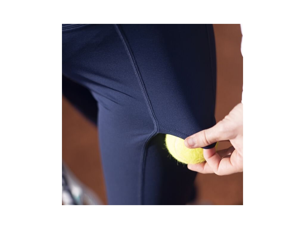 Jednoduchý jednobarevný design je nadčasový a doplňují ho dvě boční kapsy vhodné na tenisové či padelové míčky. Díky své univerzálnosti se legíny perfektně hodí i na kondiční trénink, běh, fitness nebo jógu.