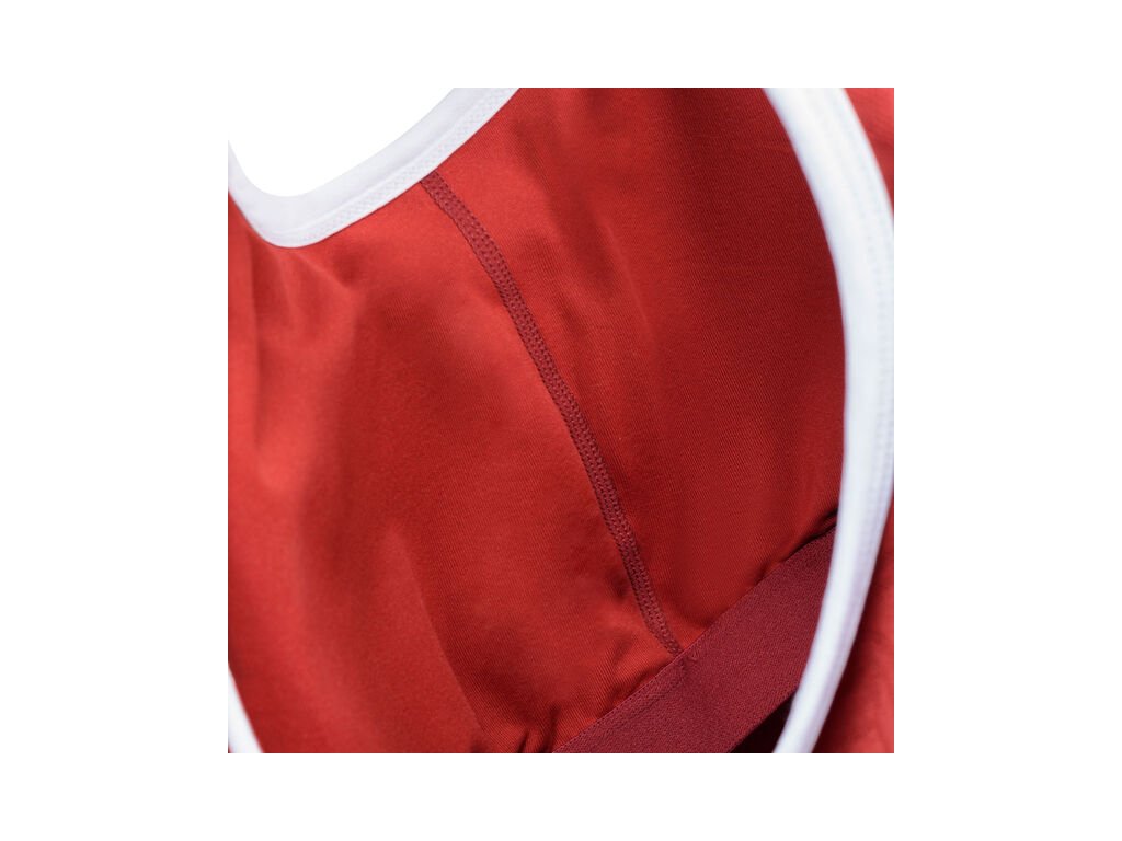 Vybrali jsme 2 doplňující se materiály: přední část je směs polyesteru a elastanu, která poskytuje oporu a elasticitu pro přizpůsobení se vašemu tělu. Zadní část je vyrobena z pružného polyesteru a je plně mikroperforovaná pro lehkost a optimální prodyšnost.