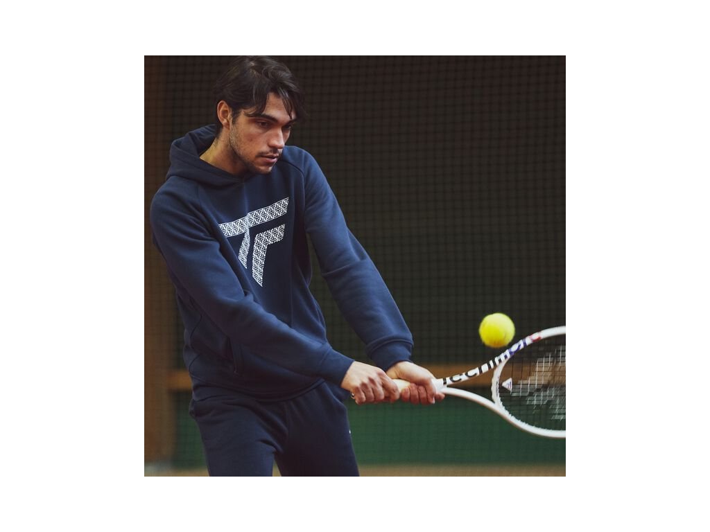 Design je klasický a zároveň moderní: výrazná grafika inspirovaná logem Tecnifibre, přičemž elegantní vzhled zůstává díky použití pouze námořnické modré a bílé barvy.