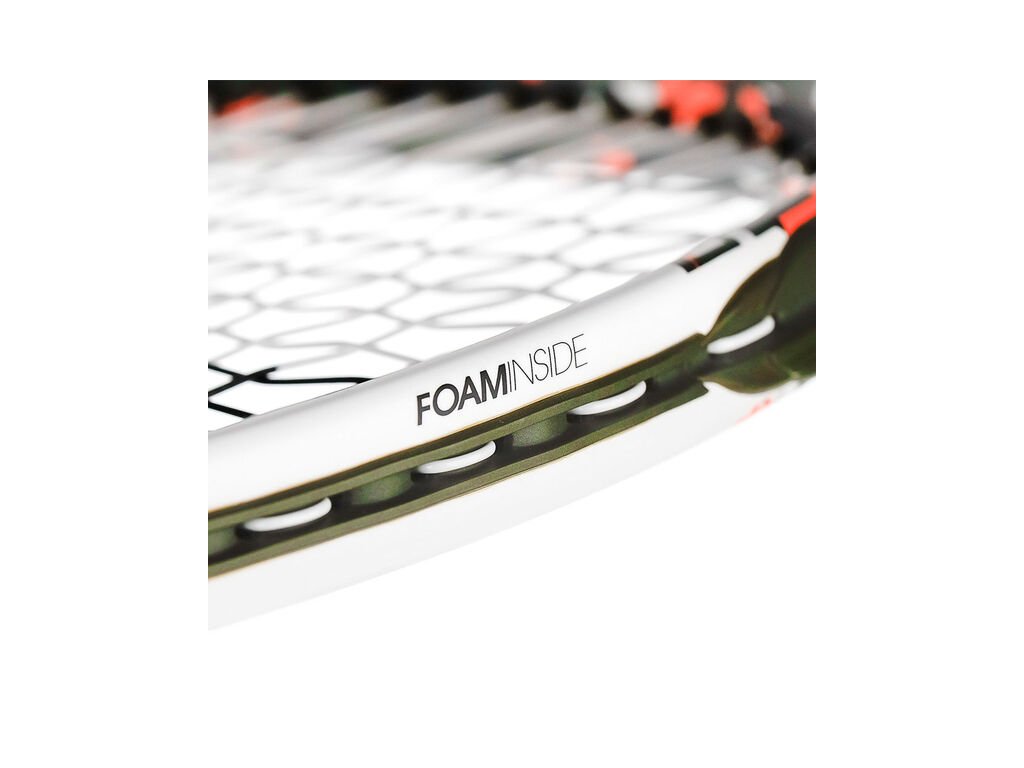 Nová řada TF-40 vyniká také stylovým designem – bílý základ Tecnifibre je doplněn khaki a neonově oranžovými prvky v moderním grafickém vzoru, který dodává raketě ultramoderní vzhled.